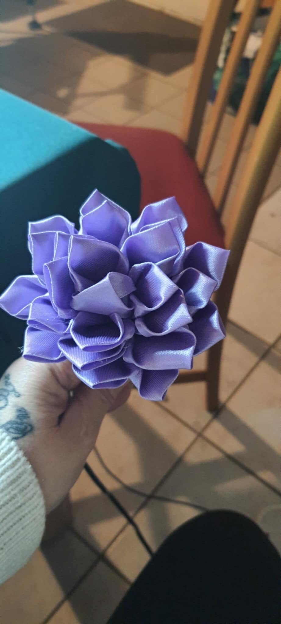 Boite ronde (Rouge, Or, Blanche, Noir ou Rose) 12/12 cm avec son couvercle (en carton) avec dalhias eternels en satin faits mains. Couleurs au choix, 3 maximum. Avec 1 couronne, 1 ruban en satin disposé selon si il y a une personnalisation.